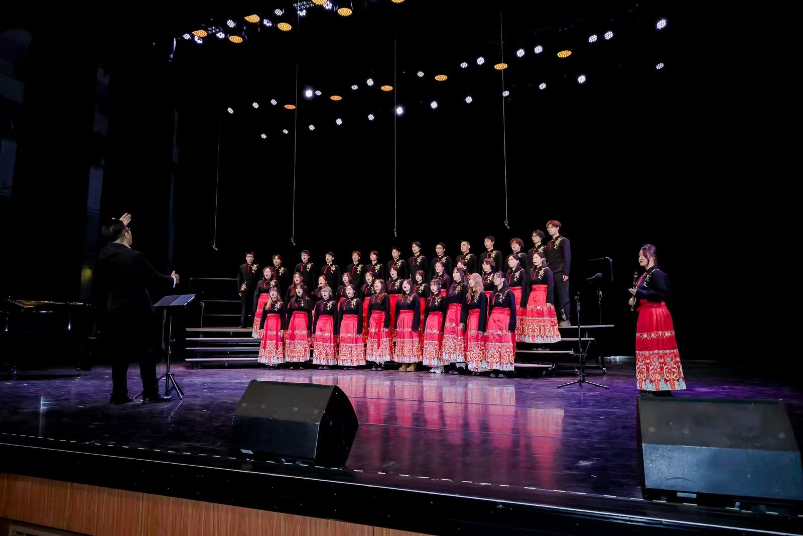 会计学院合唱团以一曲《乌兰巴托的夜》,在严谨细致的专业底色上,绘出了一幅遥远而深情的草原夜色长卷。长笛清越悠扬,和声温暖澄澈。他们用歌声探寻情感共鸣,流露出细腻的情感表达。