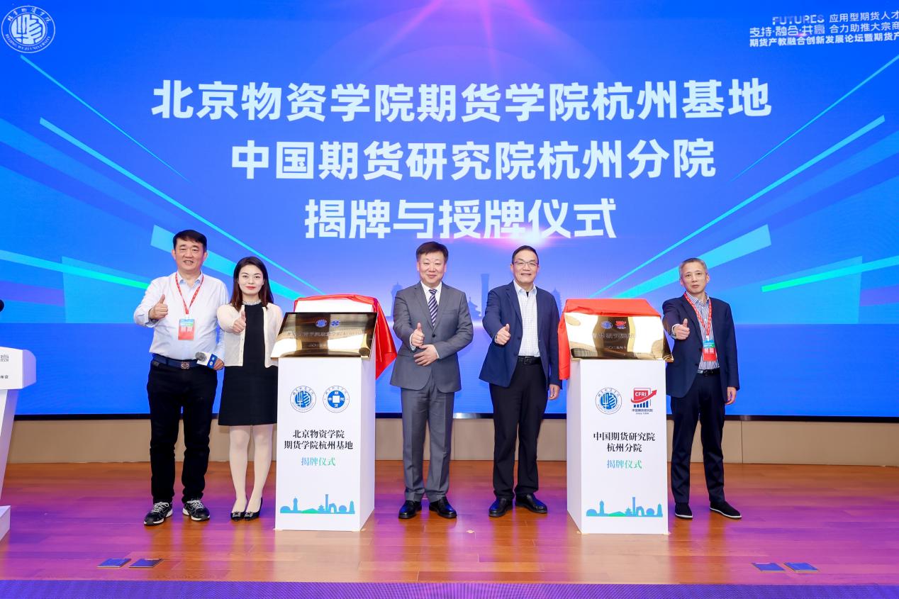 在人才培养与机构建设方面,北京物资学院期货学院副院长单磊介绍了“北京物资学院期货mba”项目,着力培养具备国际视野与实战能力的高层次期货人才。作为本次年会的重要落地成果,“北京物资学院期货学院杭州基地”与“中国期货研究院杭州分院”正式揭牌成立,为联盟在长三角地区布局提供实体支撑,助力区域产教融合走深走实。为进一步增强研究力量,中国期货研究院在此次年会中继续聘请了6名业内专家担任第二批特聘研究员。北京物资学院副院长张旭凤与浙江省金融人才协会会长施建军共同为受聘专家颁发聘书,这一举措进一步充实了行业高端智库力量,为期货行业的高质量发展提供坚实的人才支撑。