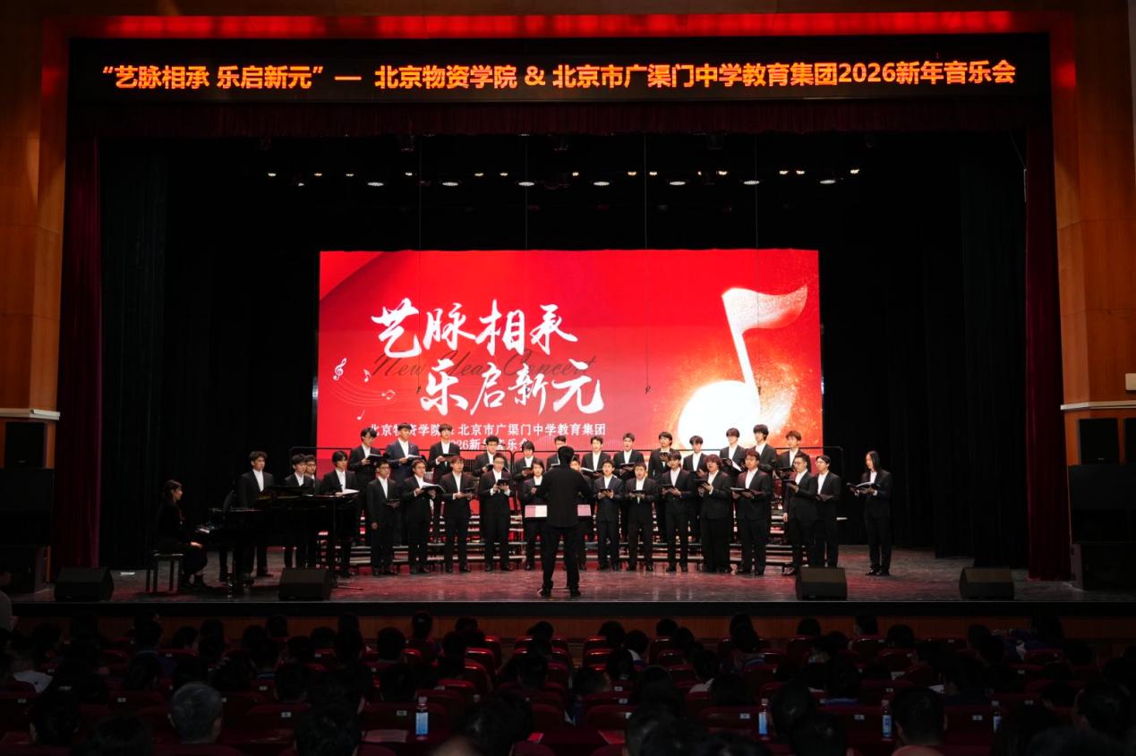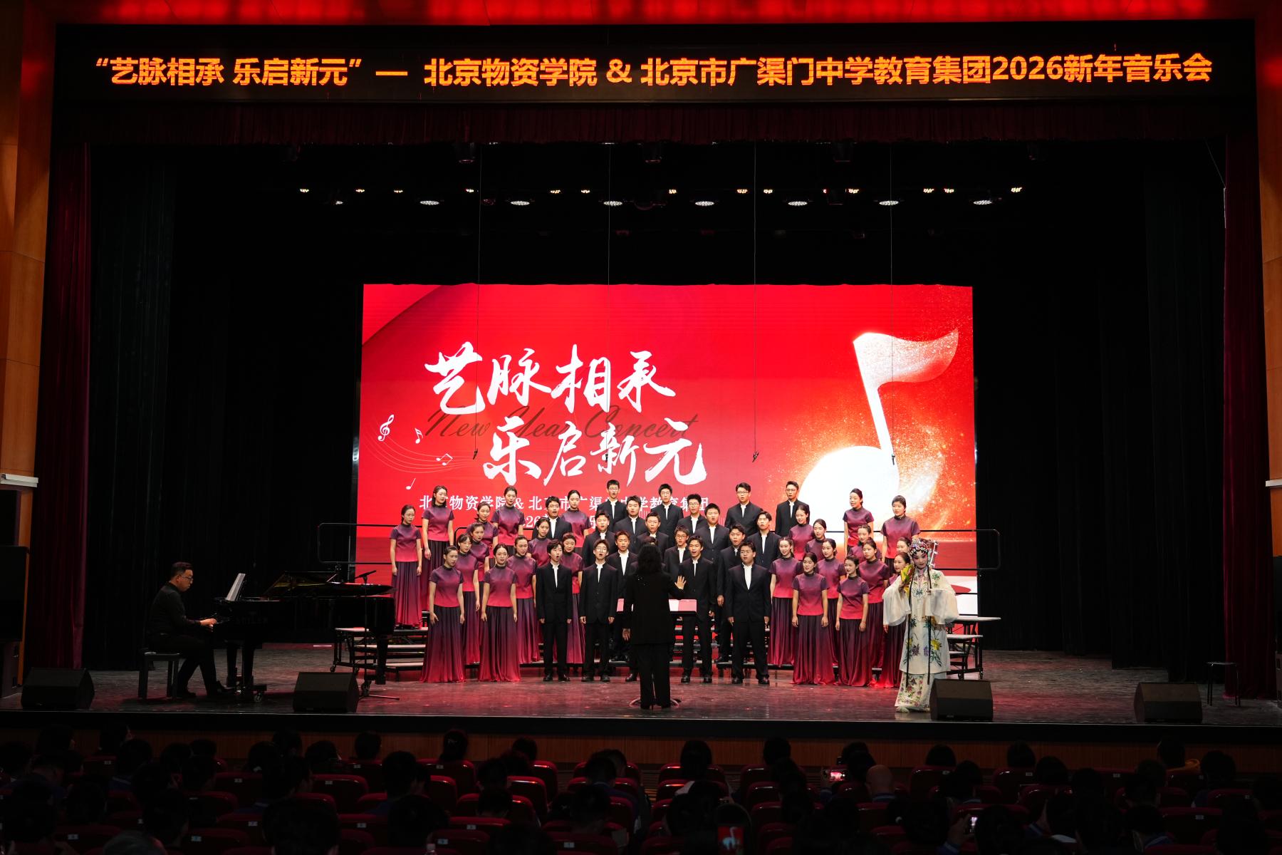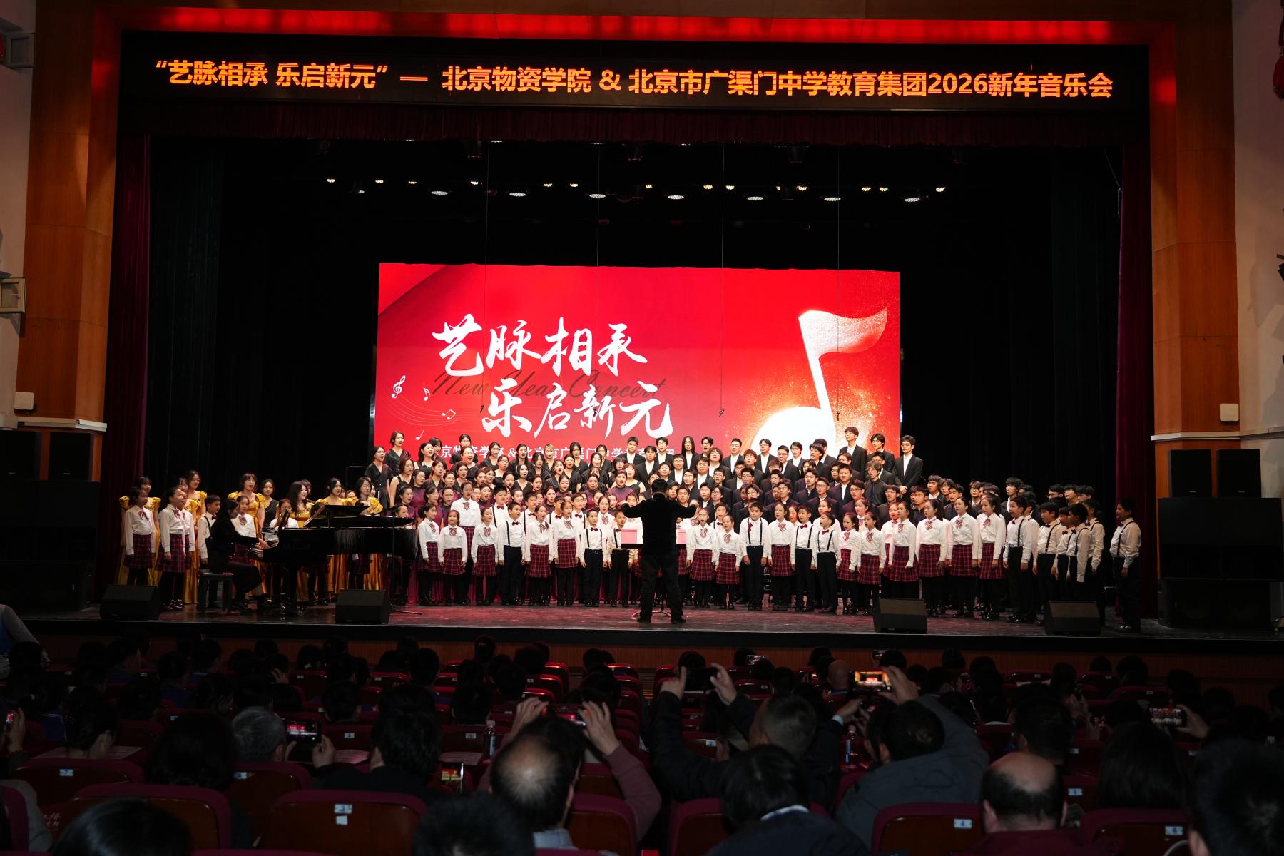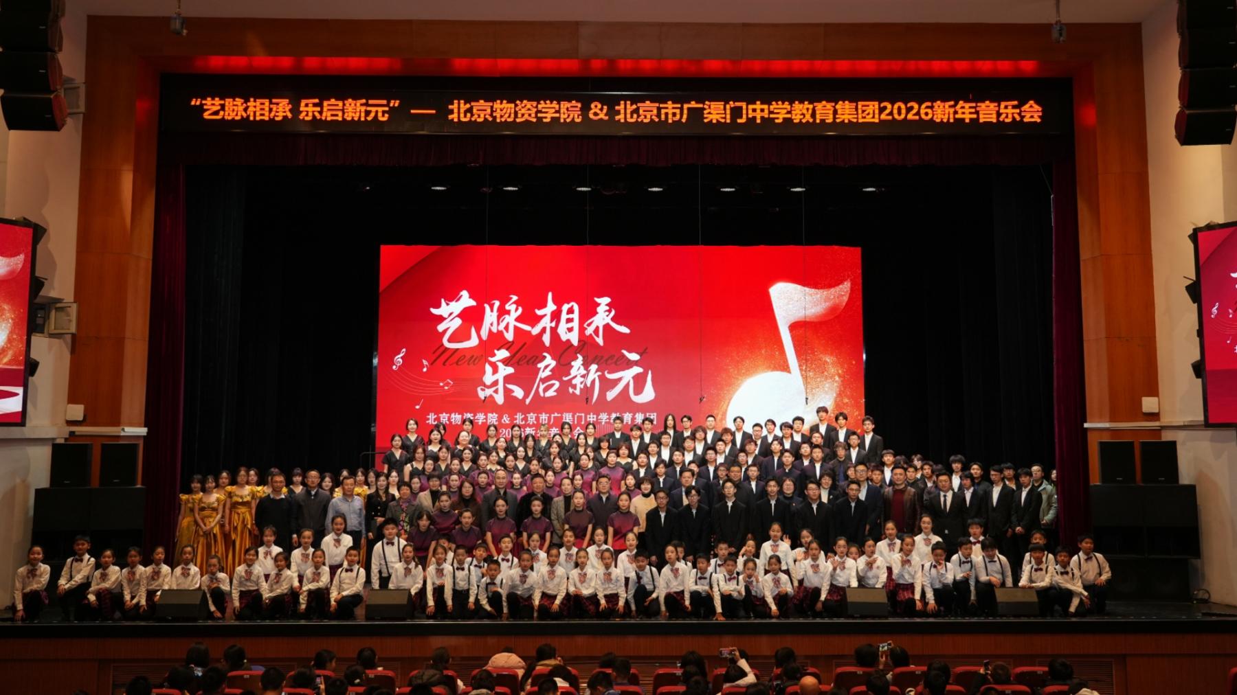 岁序更替,华章日新;弦歌不辍,万象更新。2025年12月21日19点,北京物资学院&北京市广渠门中学教育集团联合举办的“艺脉相承 乐启新元”2026新年音乐会在北京物资学院运河剧院隆重举行。作为两校深耕大中小学美育与思政教育一体化的重要实践成果,本次音乐会以艺术为桥、以育人为核,既是首都教育协同育人模式的生动演绎,更是我校坚守以美育人、以文化人,推动美育资源跨学段共建共享的具体践行,两校师生以精湛技艺与赤诚之心,共同奏响了新时代协同育人的和谐乐章。