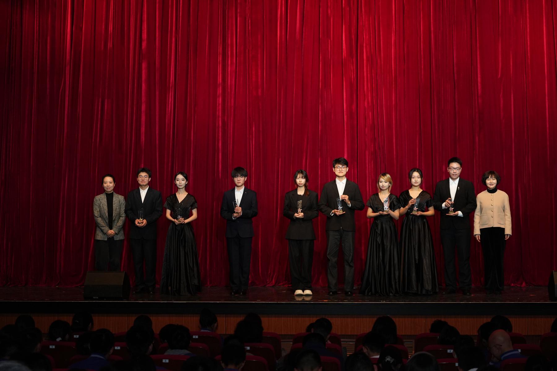 中场环节,现场表彰了北京市广渠门中学金帆艺术团2025年度优秀团干部,赞扬他们作为学生骨干的奉献与担当。