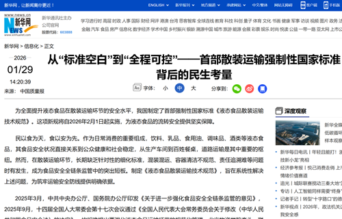 深度阐述了标准背后的民生考量与技术内涵。《液态食品散装运输技术规范》强制性国家标准的正式实施,不仅守护着每一条运输线路的安全,更体现了以最严谨标准保障食品安全的坚定决心,是我国食品安全治理能力现代化进程中的一个重要里程碑。