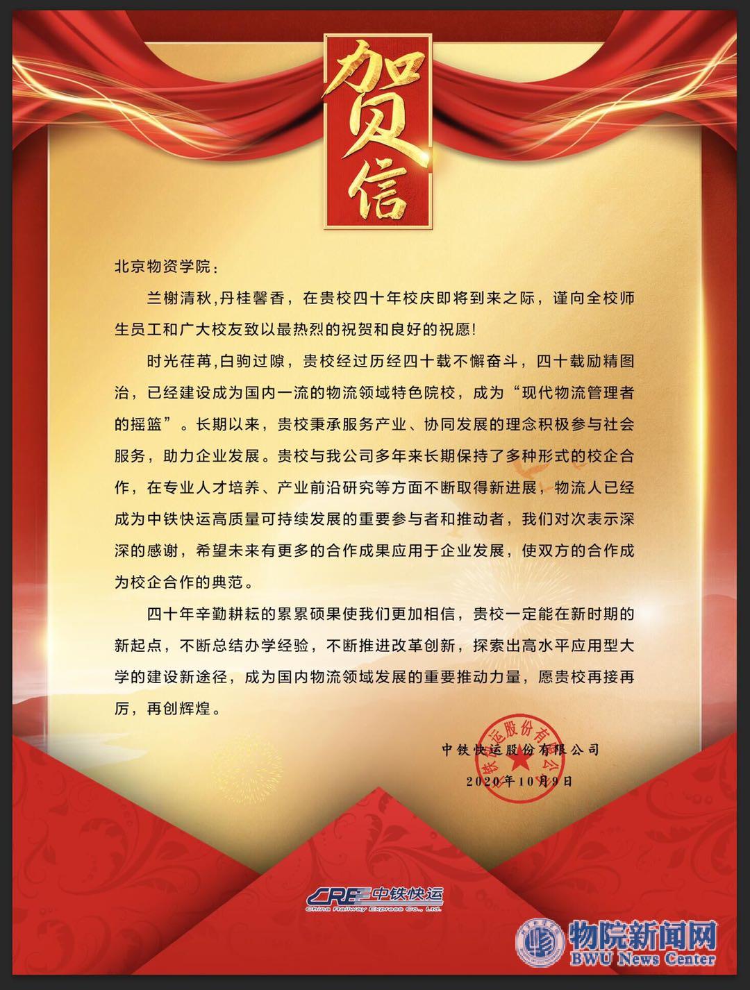 中铁快运股份有限公司贺信