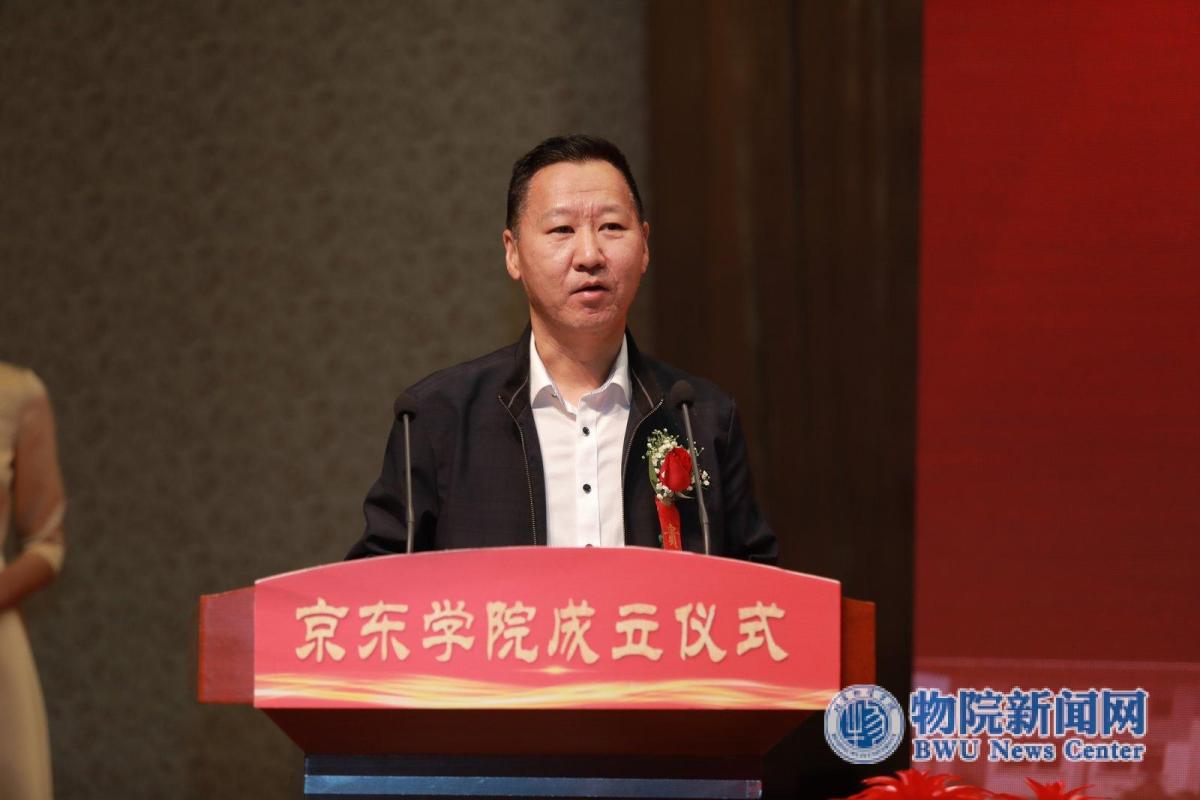 刘军院长在致辞中表示,通过四十年的发展实践,学校已经发展为产业特色鲜明、行业背景深厚、专业学科优势明显的高等学府。学校前不久召开了第三次党代会,确立了新的发展目标和方向——建设有特色的高水平应用型大学。学校更加清晰地认识到校企合作是学校实现自身发展目标的关键途径,在这个方面进行了大量的努力和探索,与包括京东集团等在内的行业领军企业建立了深层次多渠道的合作关系。今天我们成立京东学院,打造行业特色鲜明的现代产业学院,势必将开创校企全链条合作的新局面。后续在市教委的指导下,双方将在前期良好合作基础上,开展多种形式的合作。相信通过学校与京东集团的强强联合,未来将进一步提升专业人才的培养质量,提高双方的科研创新能力,拓展学校社会服务渠道,促进京东集团的发展提升,京东学院将成为国内校企合作的新典范。