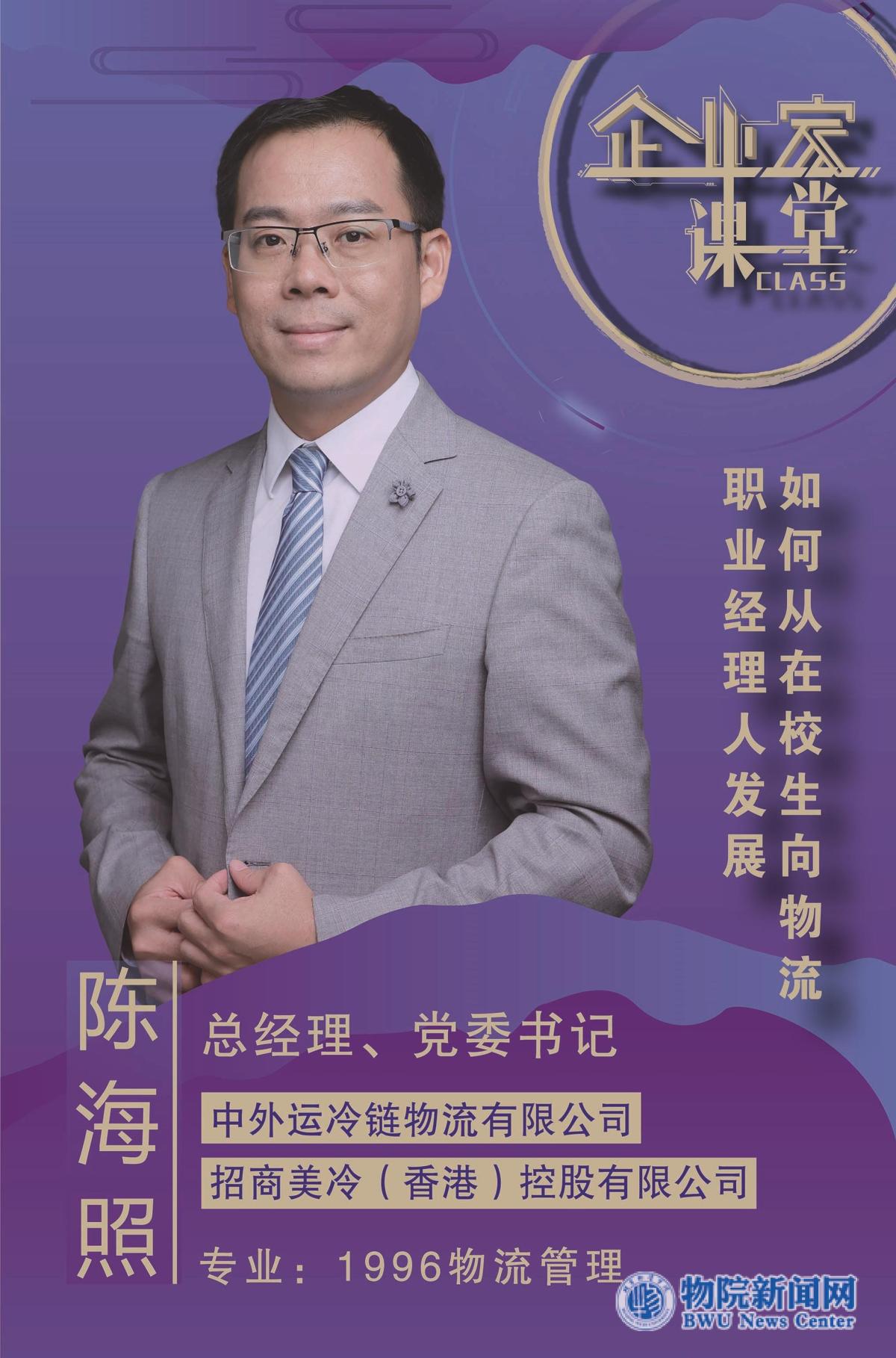 陈海照:中外运冷链物流有限公司   招商美冷(香港)控股有限公司  总经理、党委书记